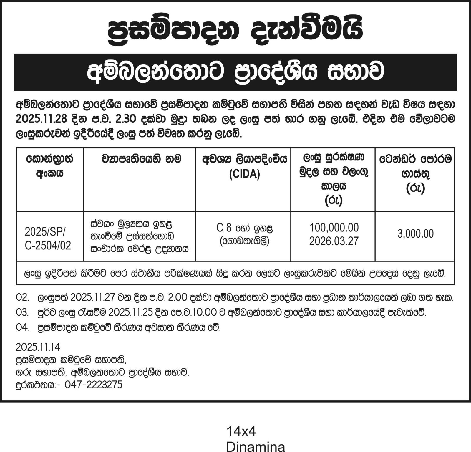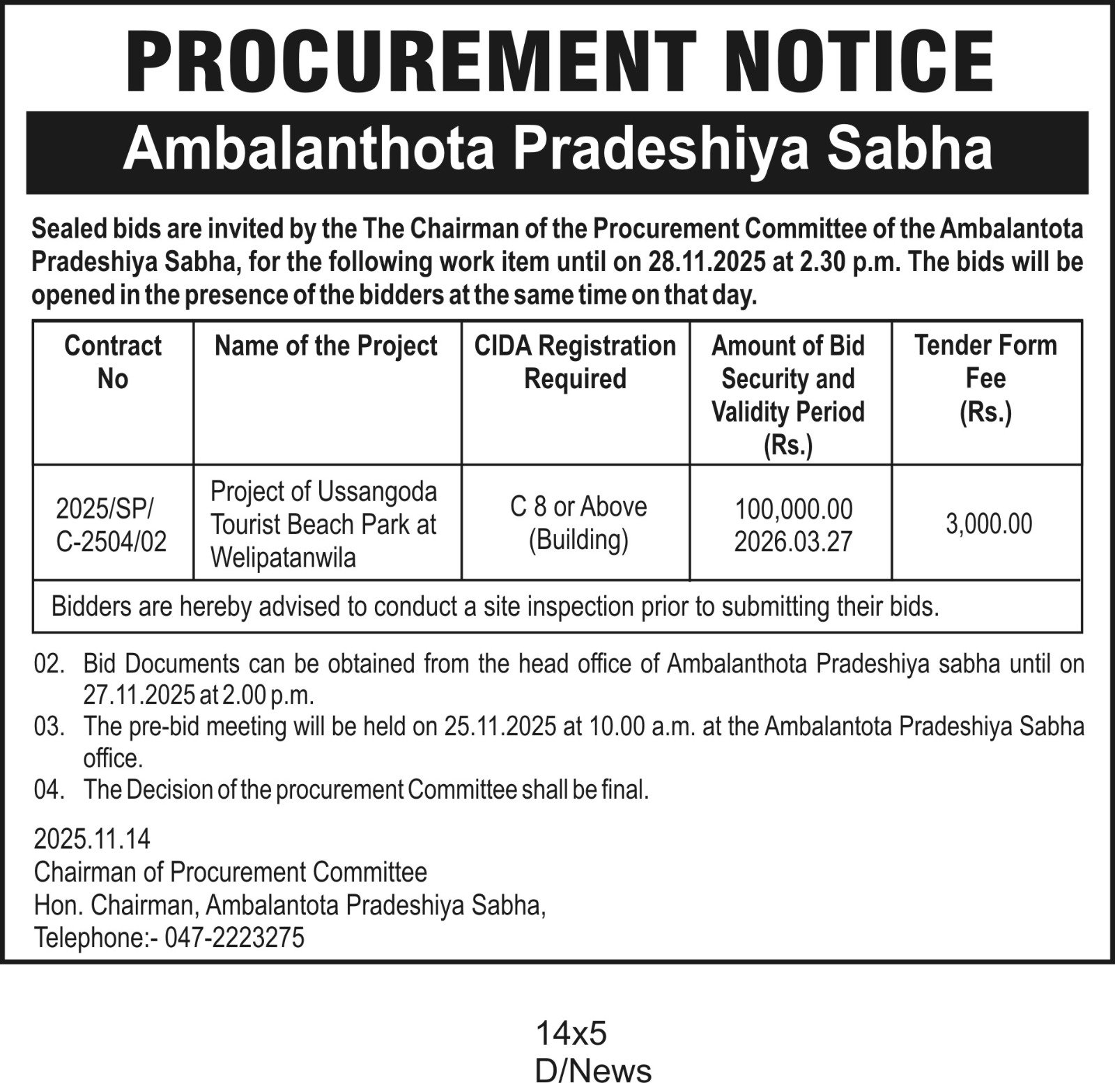 ප්‍රසම්පාදන දැන්වීම – 2025.11.28 දින දක්වා